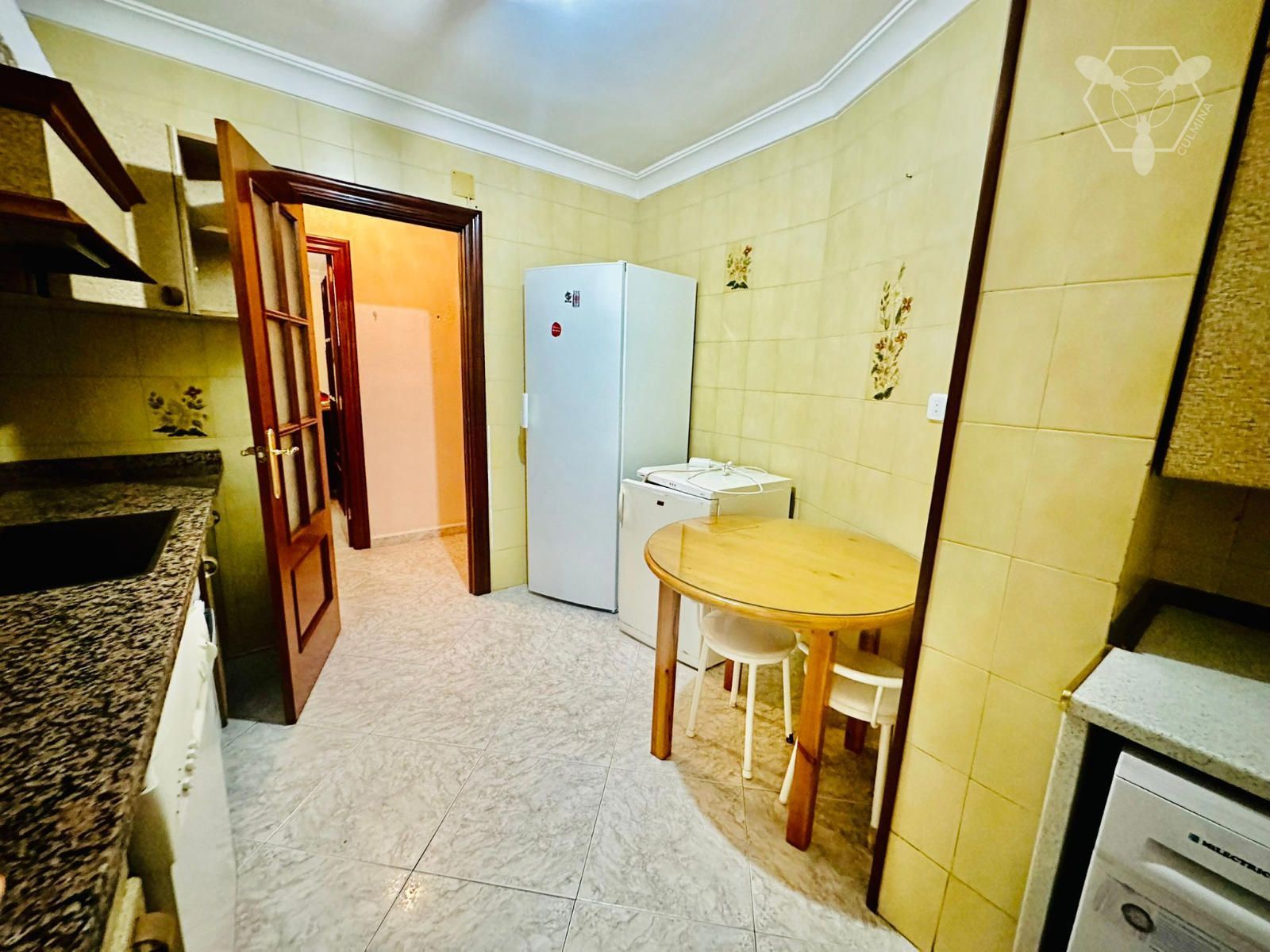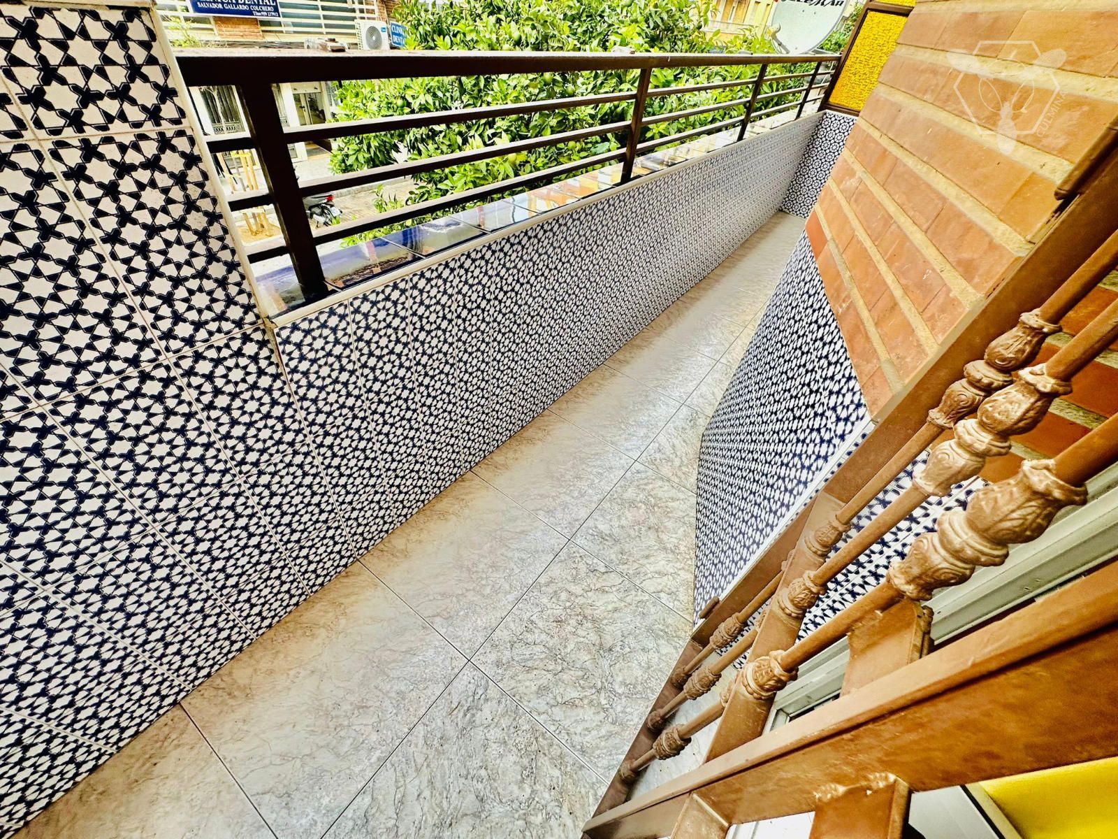Piso de unos 95 m2 distribuidos en 4 habitaciones grandes dobles, una de ellas con balcón a la Avenida, salón, 2 patios y 2 baños.
